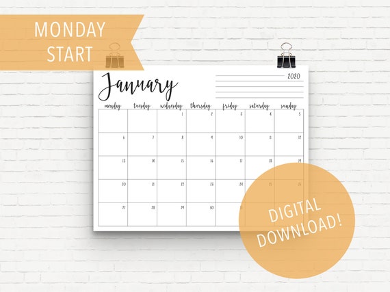 2020 Calendar Printable Free Pdf Colorful Monday Start Nycdesign Co Calendars Printable Free