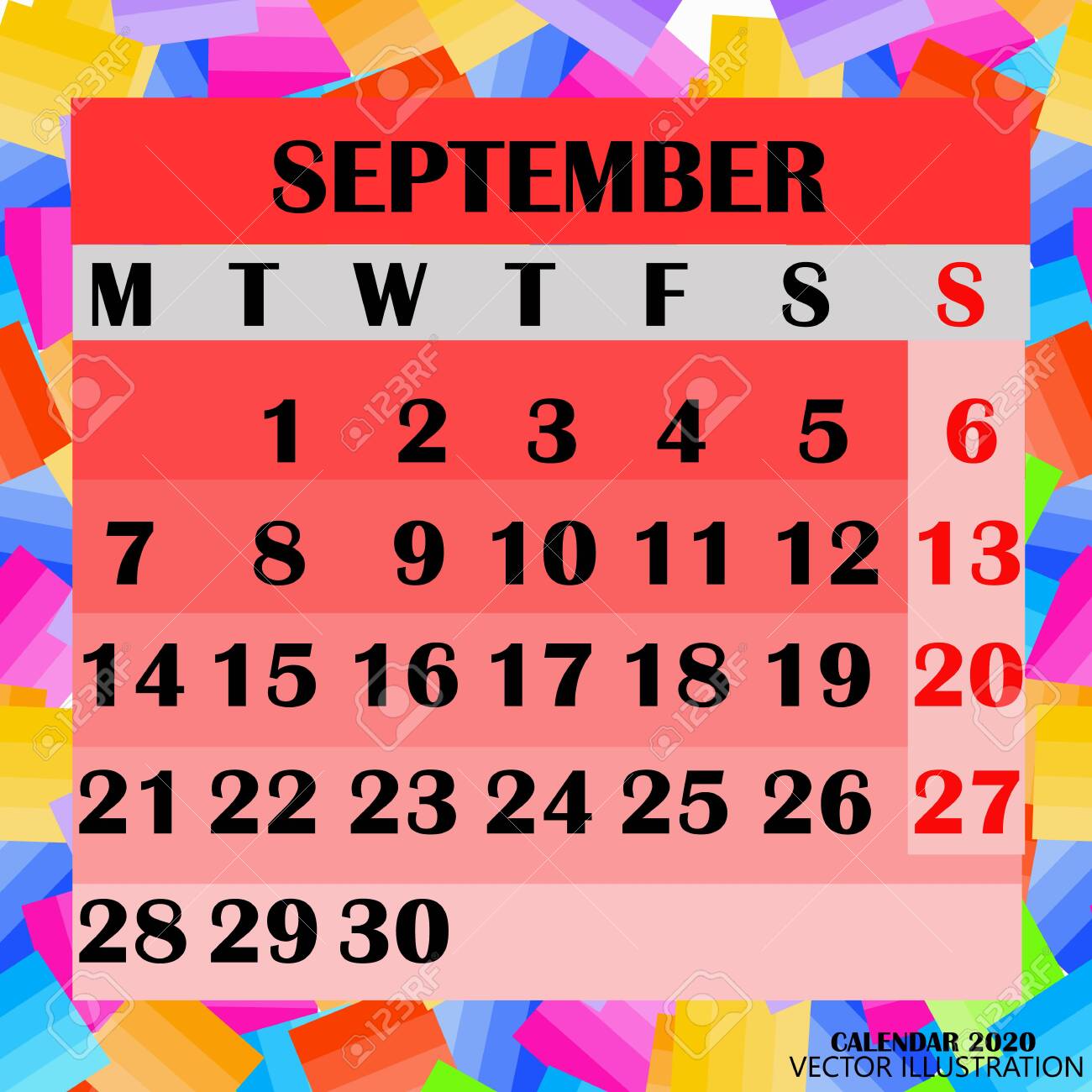 Calendar For 2020 Year Template September Month Desk Calendar 2020 Week Start On Sunday Planner Design Stationery Stock Vector Illustration Of Illustration Design 159648151