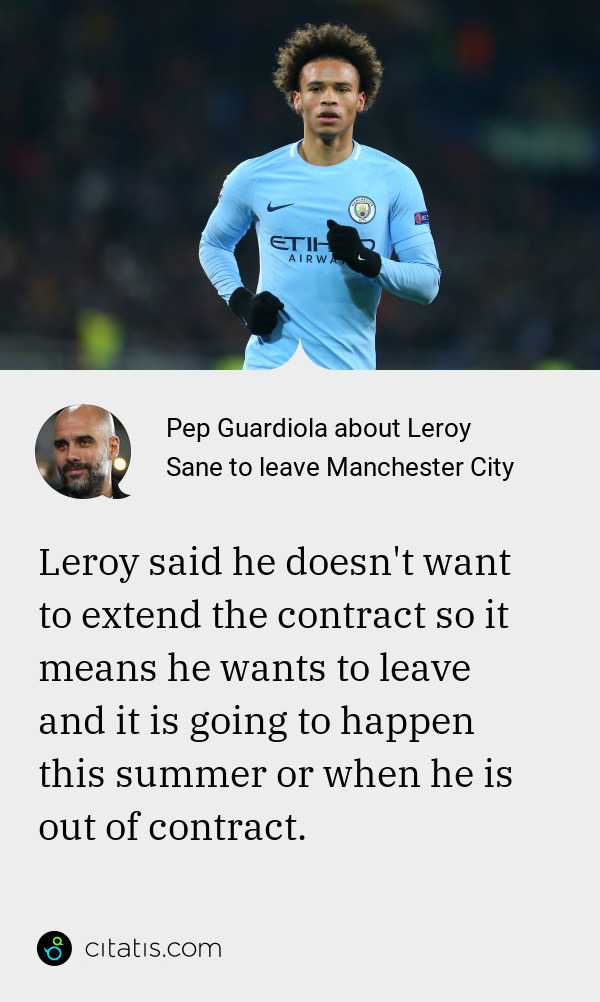Pep Guardiola Confirms Leroy Sane Will Leave Manchester City After Turning Down Huge Contract Offer
