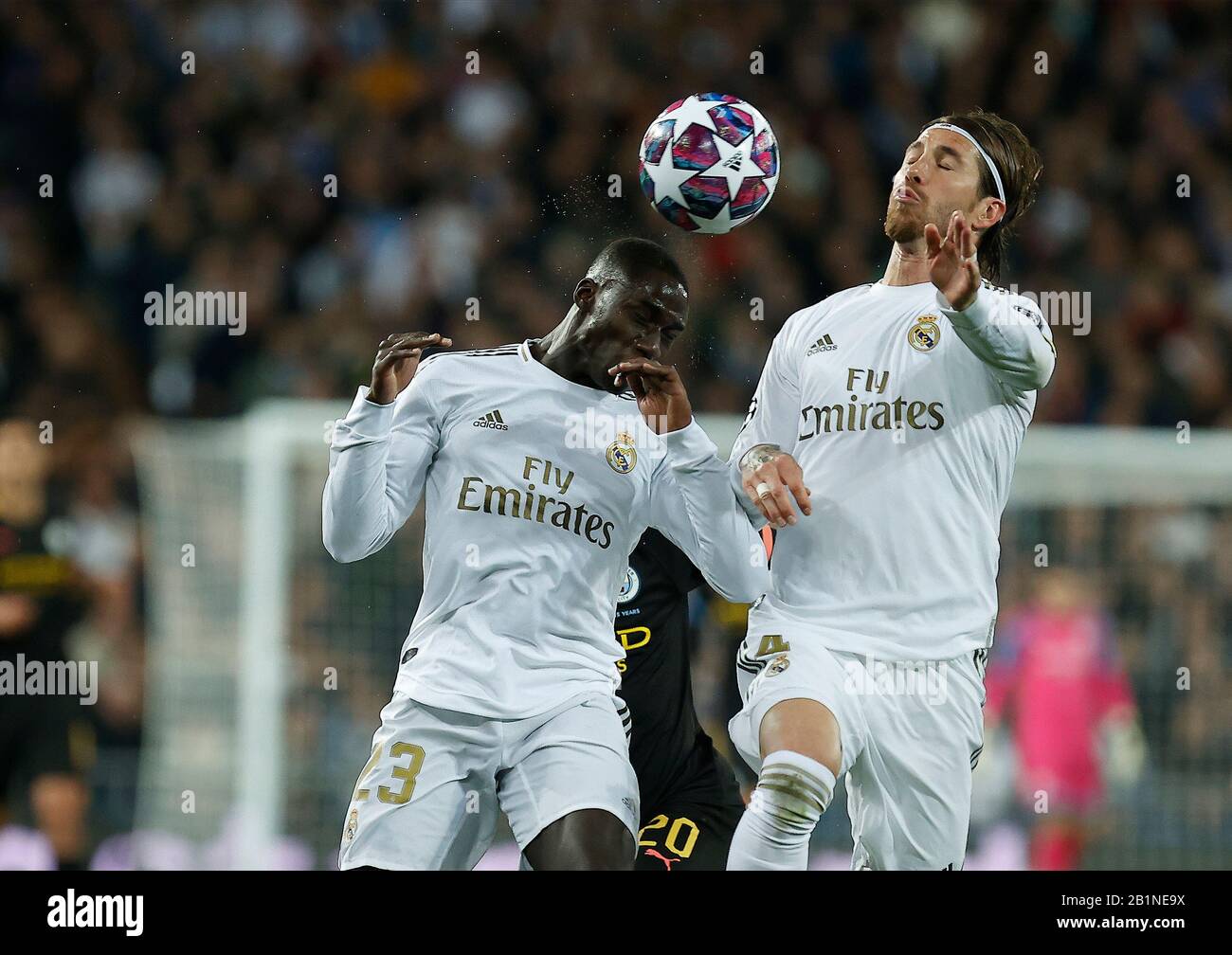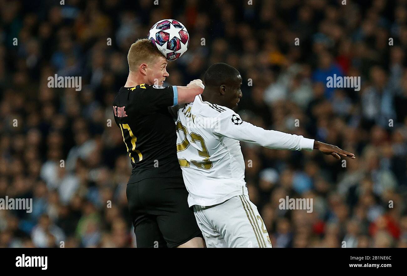 Kevin De Bruyne Of Manchester City And Real Madrid Cf S Ferland Mendy Competes For The Ball During The Uefa Champions League Match Round Of 16 First Leg Between Real Madrid And Manchester