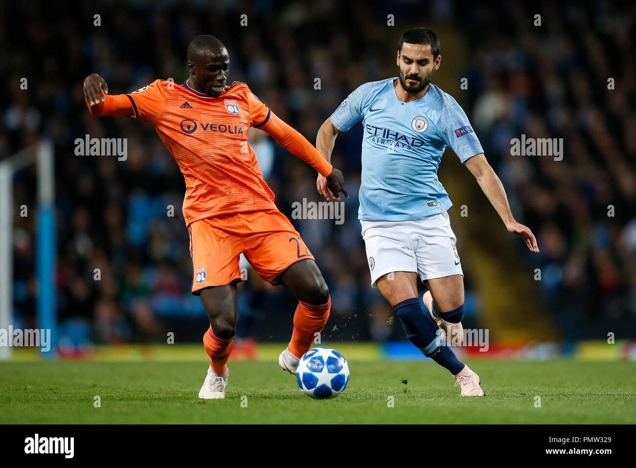 Etihad Stadium Manchester Uk 19th Sep 2018 Uefa Champions League Football Manchester City Versus Lyon David Silva Of Manchester City And Ferland Mendy Of Lyon Challenge For The Ball Credit Action Plus