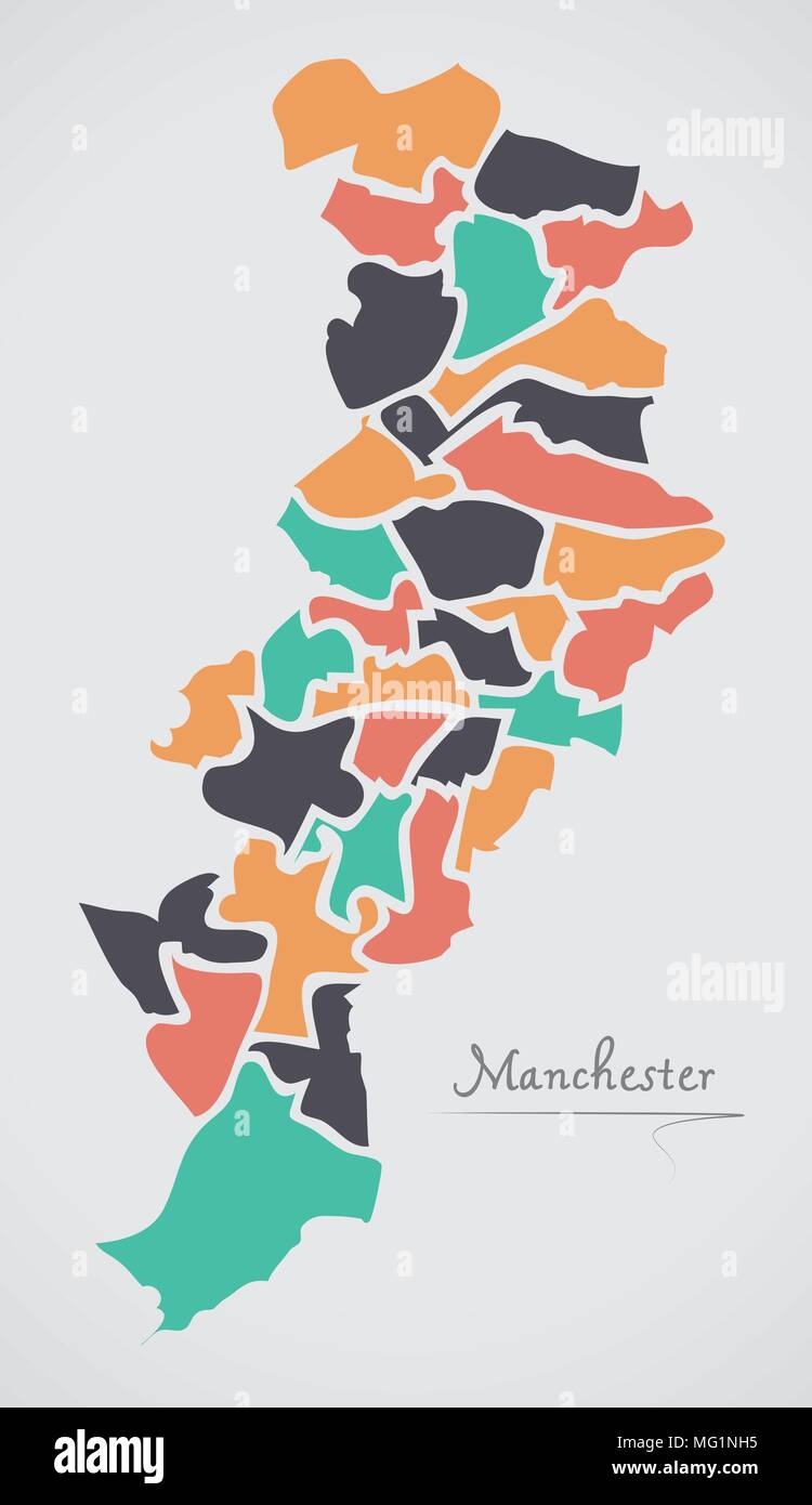 Modern City Map Manchester City Of England With Wards And Titles Uk Outline Map Stock Vector Illustration Of Shape Administrative 115351390