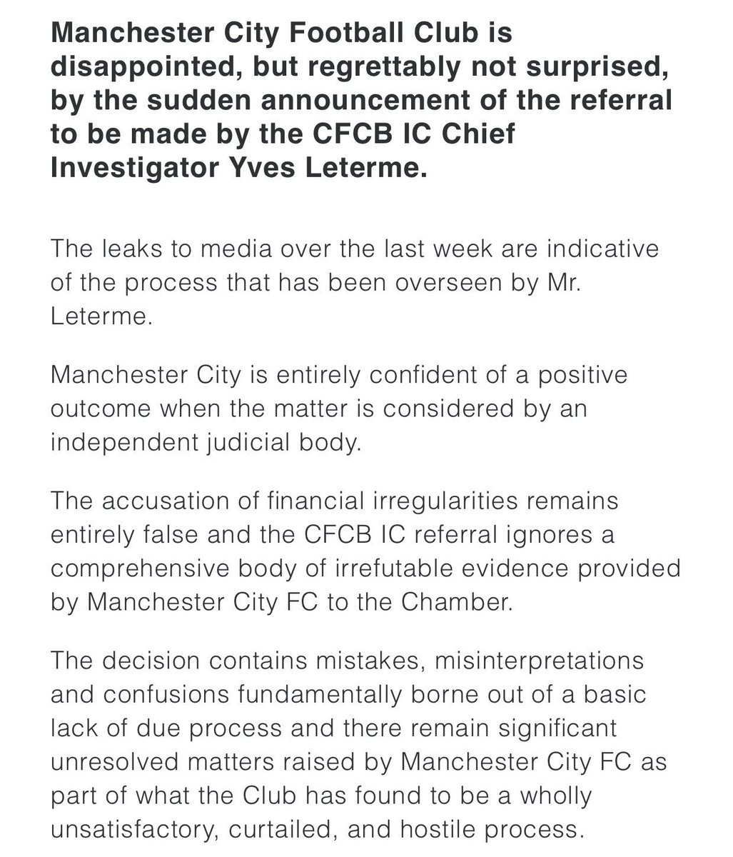 City Chief On Twitter Manchester City Have Hit Out In A Strongly Worded Statement After A Uefa Investigation Into Allegations Of Financial Fair Play Irregularities Which Could Lead To A Uc Ban