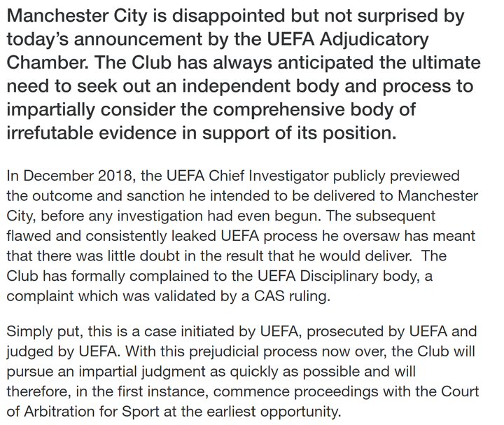What Are Your Thoughts On Manchester City Being Banned For 2 Years From Playing Champions League For Breaching Financial Fair Play Rules Quora