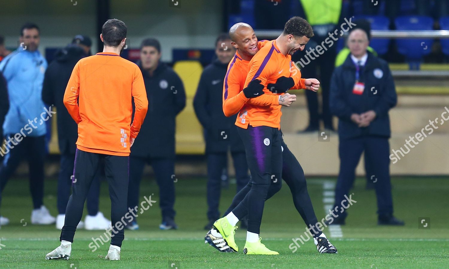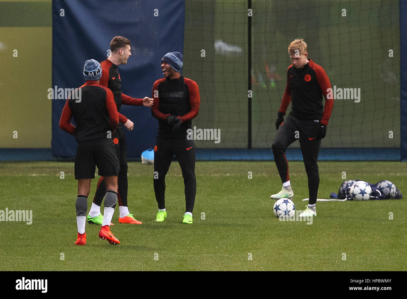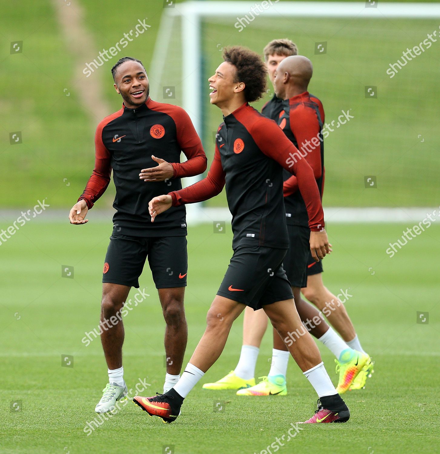 Etihad Stadium Manchester Lancashire Uk 22nd Oct 2019 Uefa Champions League Football Manchester City Versus Atalanta Sergio Aguero Of Manchester City Shares A Joke With Team Mate Manchester City Goalkeeper Ederson