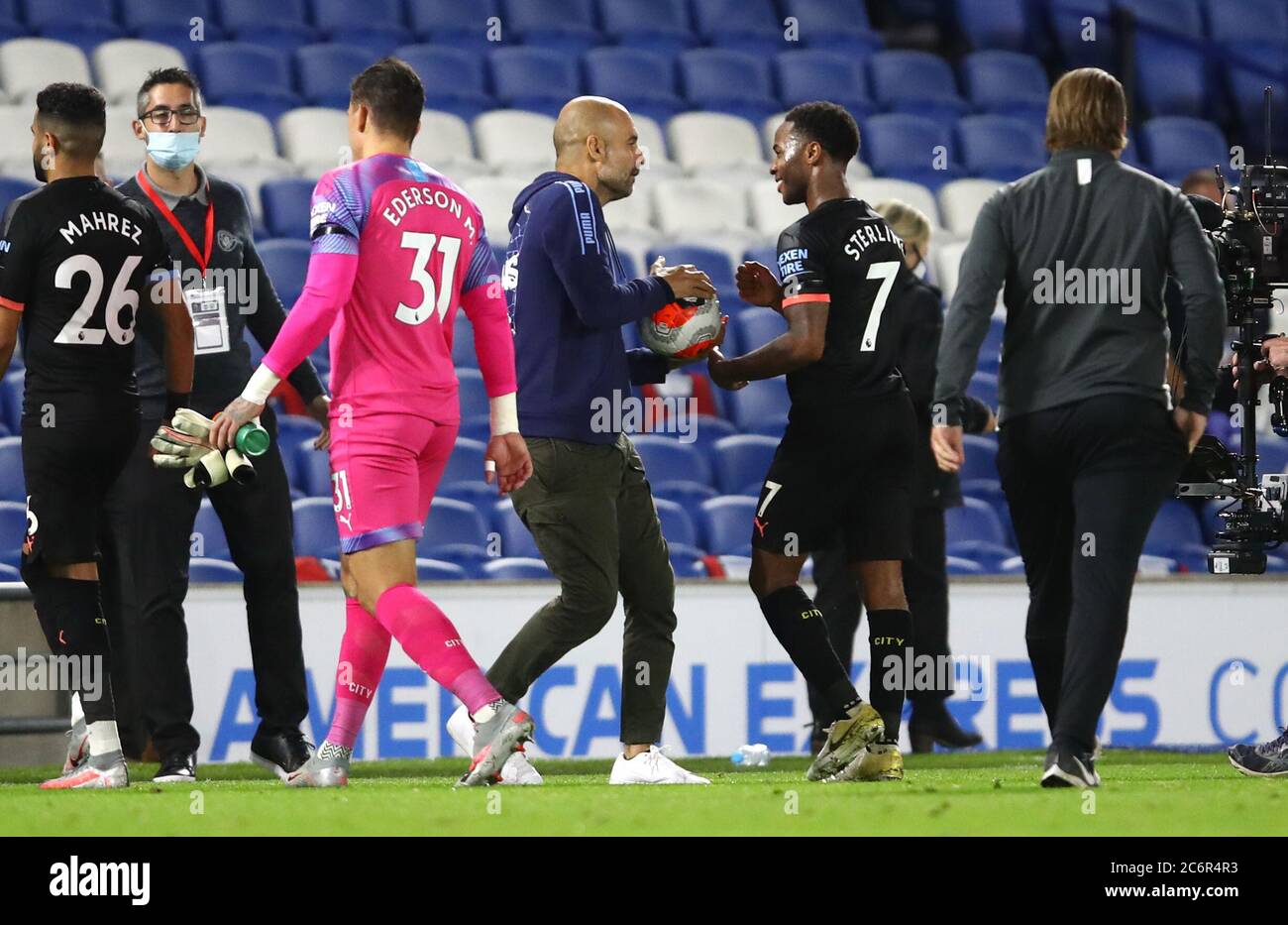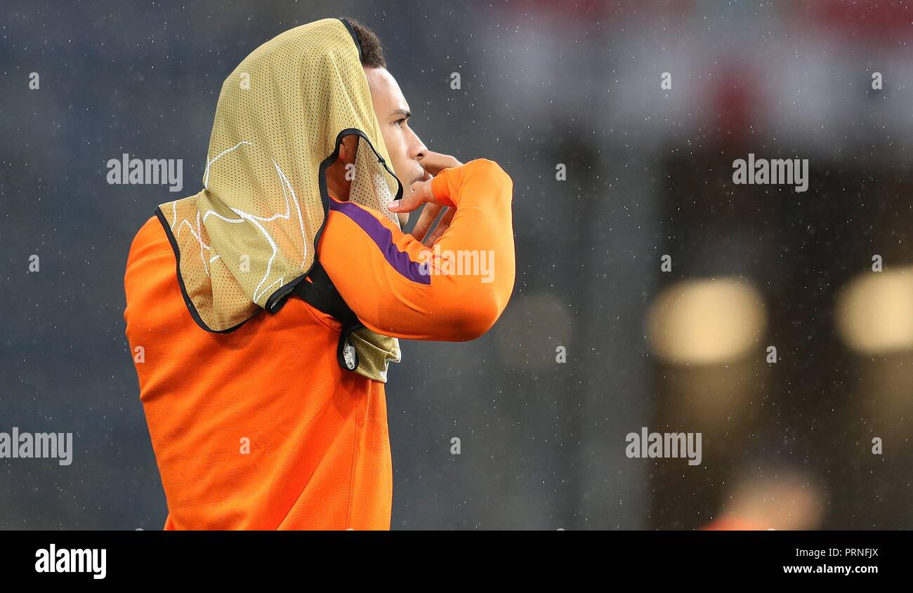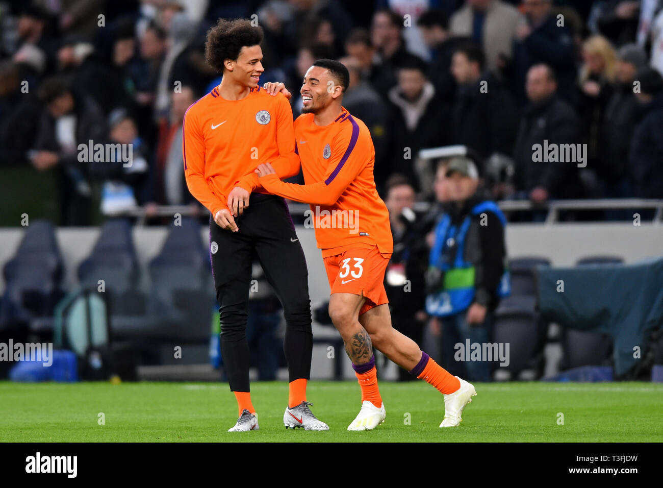 Etihad Stadium Manchester Lancashire Uk 22nd Oct 2019 Uefa Champions League Football Manchester City Versus Atalanta Sergio Aguero Of Manchester City Shares A Joke With Team Mate Manchester City Goalkeeper Ederson