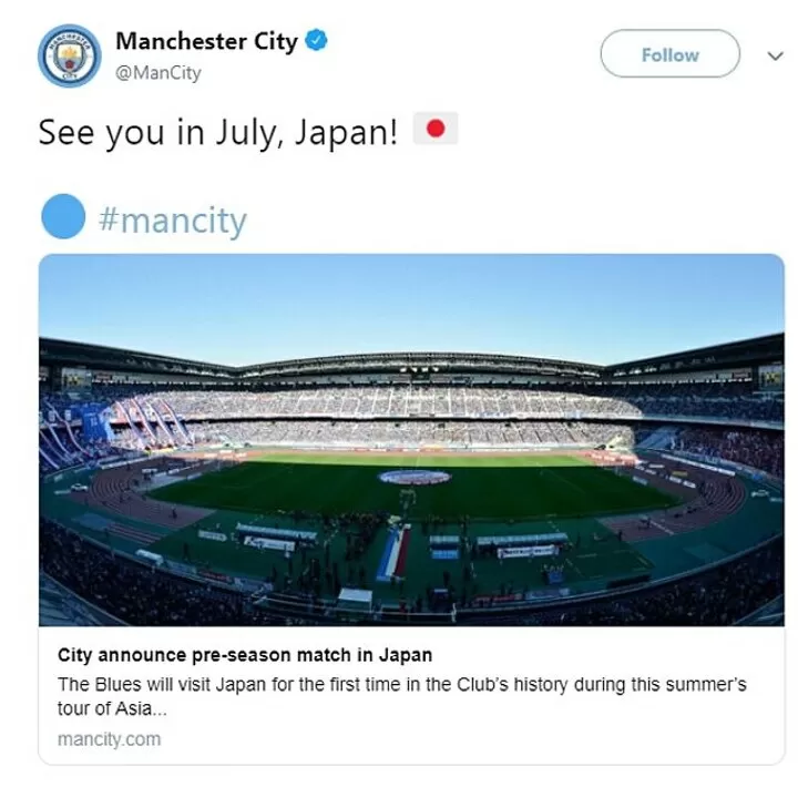 Manchester City To Face Sister Club Yokohama F Marinos In Japan