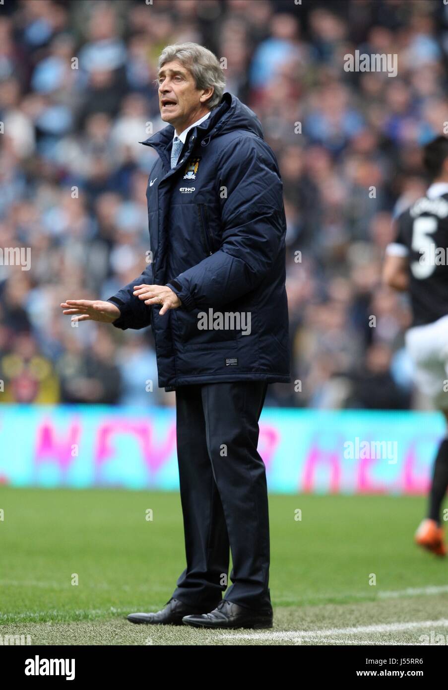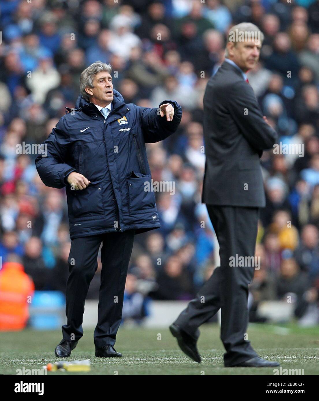 Manchester City Manager Manuel Pellegrini Left And Arsenal Manager Arsene Wenger On The Touchline Stock Photo Alamy