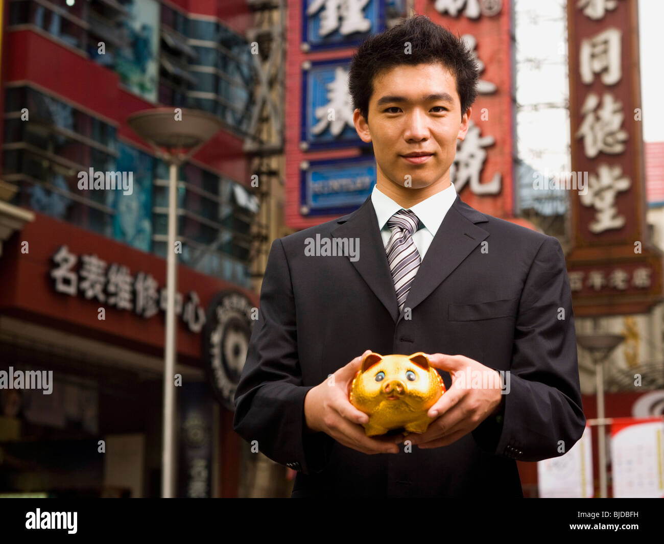Caucasian Smart Business Man In Black Suit Holding Piggy Bank Stock Photo Picture And Royalty Free Image Image 94145725