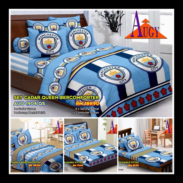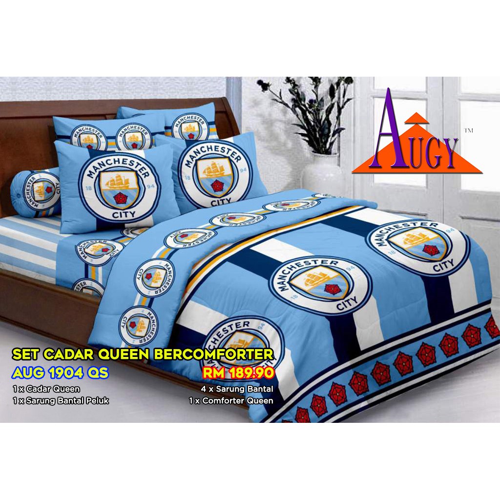 Manchester City Football Club Bedding In Bag Set Queen Size Mc001 1 Four Season Comforter With 4 Pieces Of Bed Fitted Sheet Set Wantitall