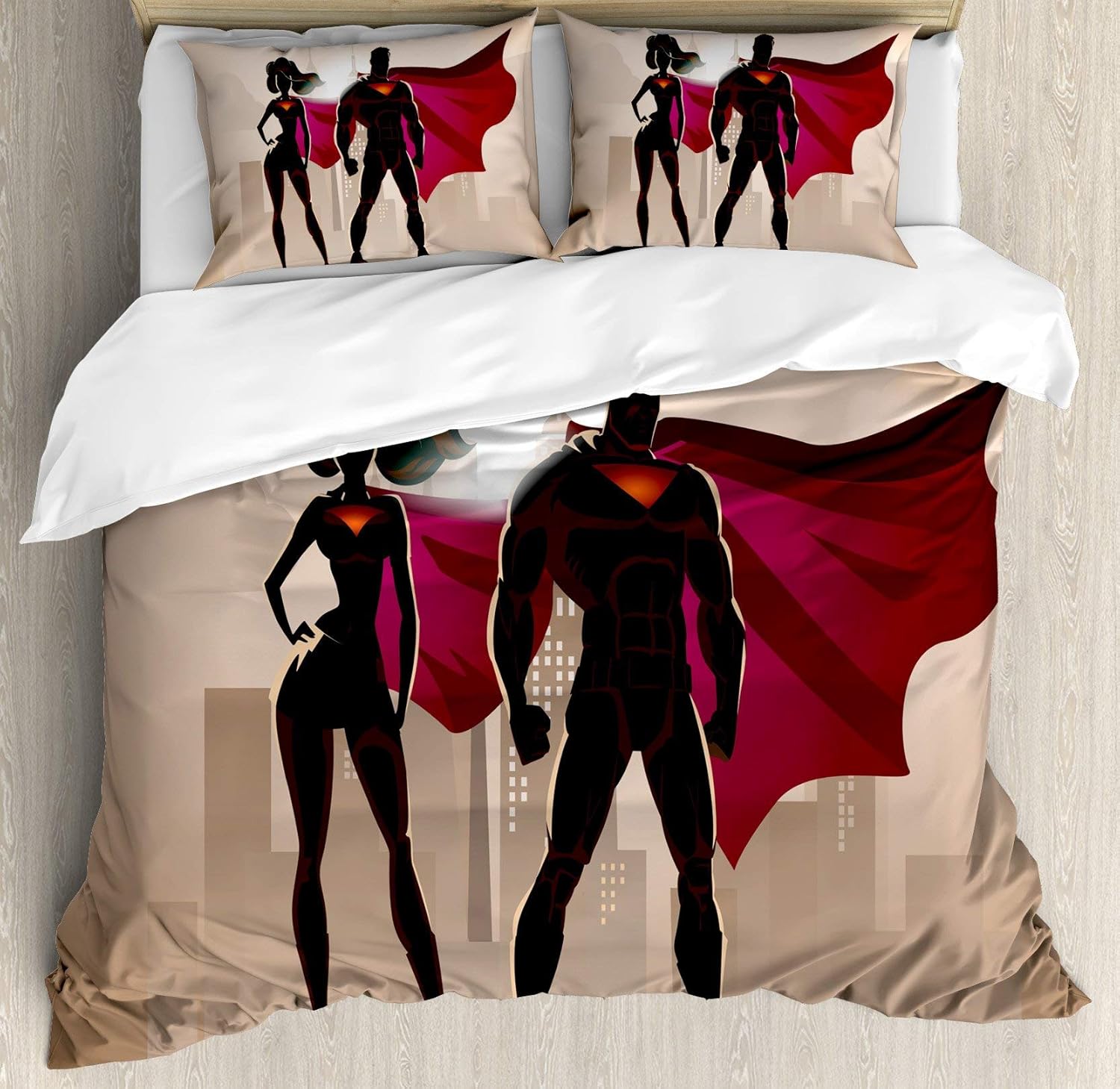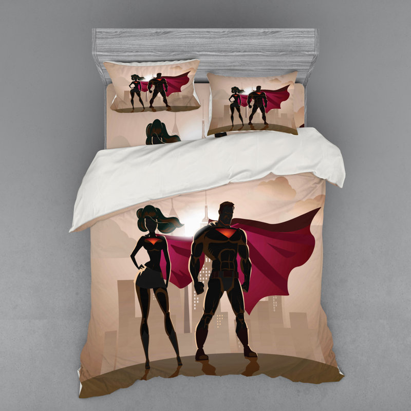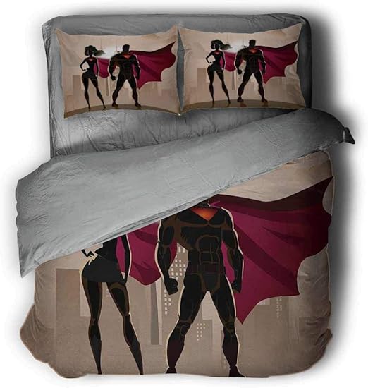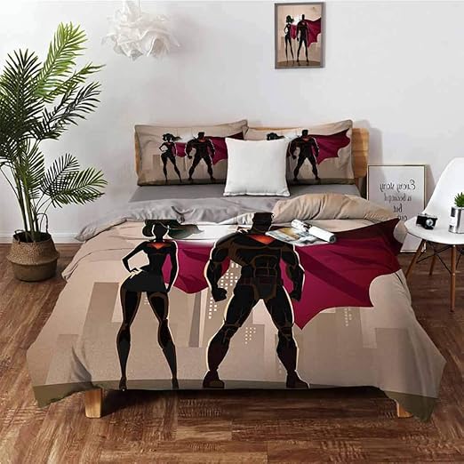 Amazon Com Usophia Superhero 4 Pieces Bed Sheets Set Queen Size Super Woman And Man Heroes In City Solving Crime Hot Couple In Costume Floral Duvet Cover Set Beige Brown Magenta Home