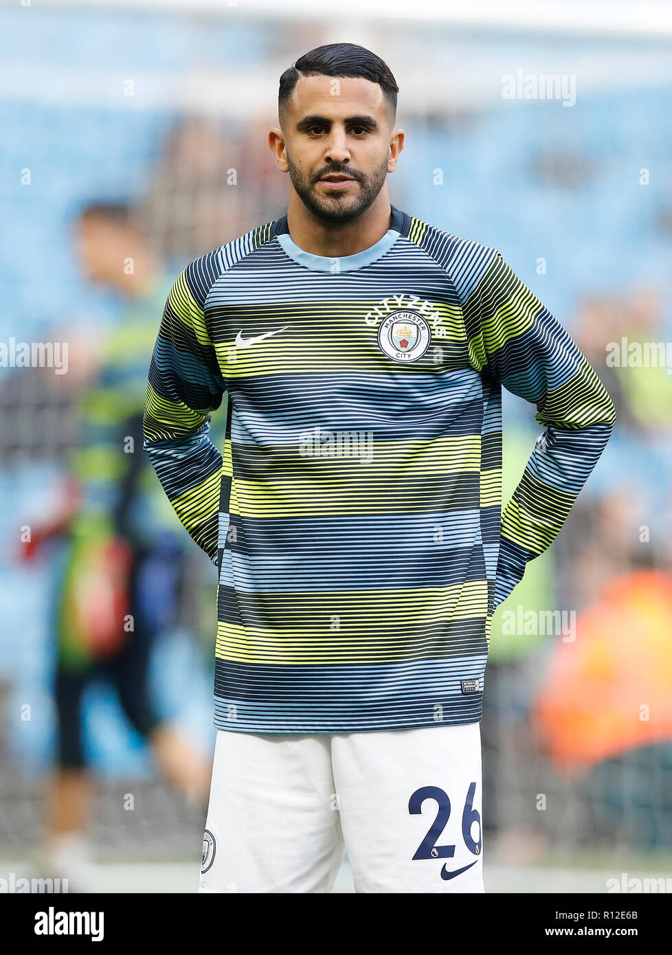 New Manchester City Signing Riyad Mahrez Holds Up His Shirt During The Press Conference At The City Football Academy Manchester Stock Photo Alamy