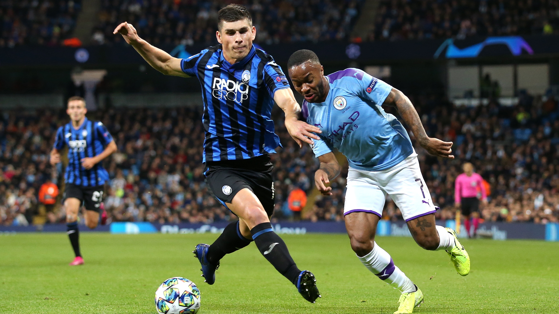 Sterling Hat Trick Helps 10 Man Manchester City Thrash Atalanta 5 1 Football The Guardian