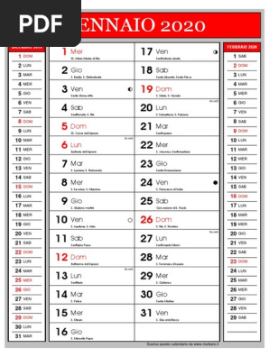 Calendario 2020 Excel Con Le Festivita Italiane Da Stampare Calendario Stampabile Festivita