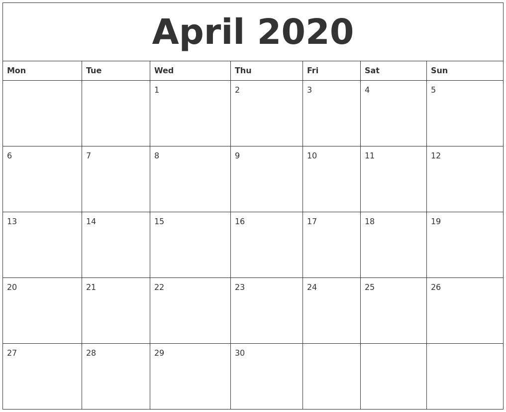 Calendar March 2020 Blank Printable Template Free Download In 2020 Printable Calendar Template Calendar For April 2020 Calendar Template