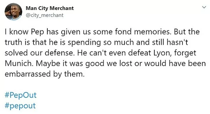Twitter Reacts As Lyon Stun Manchester City In The Champions League Quarter Final